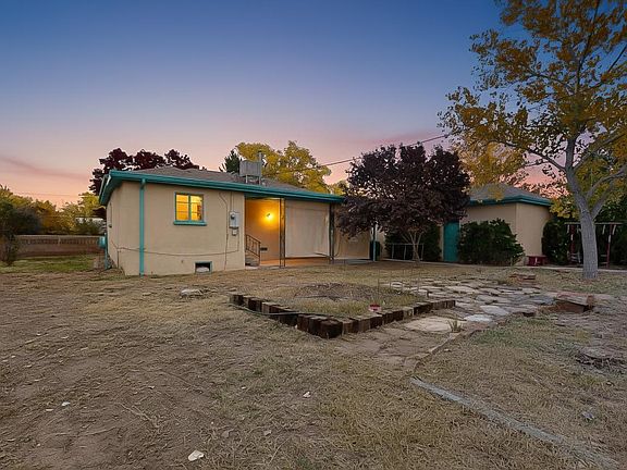 If you've dreamt of living in the beating heart of the village of Los Ranchos, this is your chance! Situated on a lush third-acre lot of mature landscaping and surrounded by neighbors with massive cottonwood trees, you'll quickly forget you're right in the middle of it all.This dollhouse blends indoor and outdoor living well, with a shaded and covered front porch and back patio, perfect for enjoying our weather year-round. Original hardwood flooring is in great shape throughout the home, and vibrant colors greet you in every room. The kitchen has the New Mexico charm we all know and love, and the energy this home has is palpable.Last, but certainly not least, is the oversized two car garage and workshop area (currently not for cars, but a perfect artist's studio or workshop)!