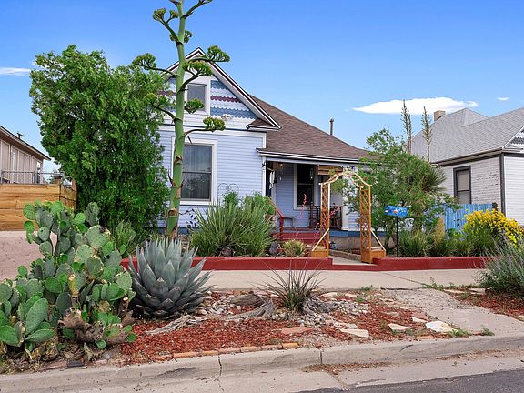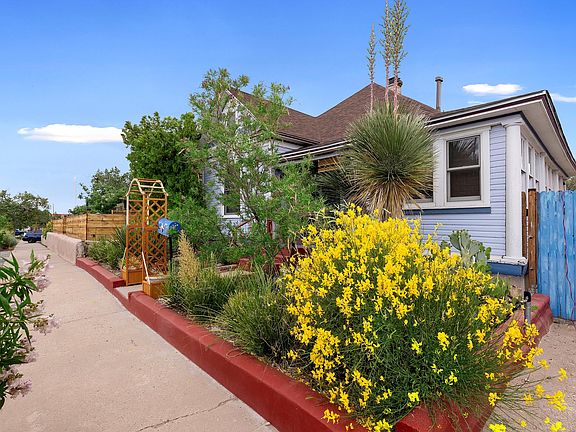 Welcome to this bright and happy home in the historic neighborhood of Huning Highlands. This charming Queen Anne, built in 1908, has been thoughtfully maintained to blend modern with historic charm. This home features 1 bedroom, with the possibility of a 2nd, AND an additional office. New Roof 2024. Newer windows, Bathroom has a beautifully resurfaced claw foot tub, fresh paint. Original wood floors and impressive 10-foot ceiling cabinetry. Dining room flows into a well equipped kitchen featuring custom tin ceilings, complete w/ stainless refrigerator and a fully functional vintage stove/oven. The master bedroom is situated just off the enclosed wrap porch. An additional 20x24 Building/Storage could possibly be a future Casita with alley access. Minutes to shopping, restaurants and UNM!