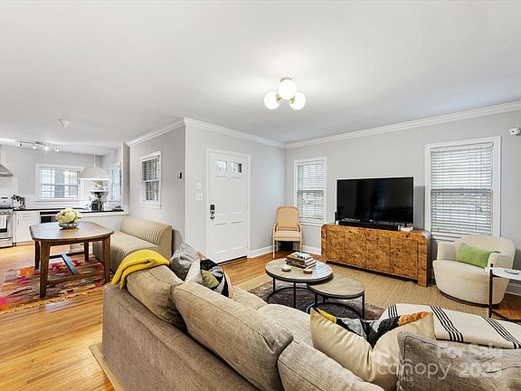 Charming Colonial Village brick ranch with lots of modern updates! Fabulous location just minutes to uptown, South End, the light rail, Park Road and many great amenities. Open floor plan, beautiful wood floors, tons of character. Kitchen features updated cabinetry, tile backsplash, granite countertops and stainless appliances, including gas range and exhaust hood. The sitting room at the back of the home opens to beautiful large, flat and fully fenced backyard with paver patio, built in seating area and fire pit. Perfect place to entertain your family and friends! HVAC 2022, roof 2016, tankless water heater. Walk or bike to many restaurants, breweries, shopping and the light rail. This is one you will want to call HOME!