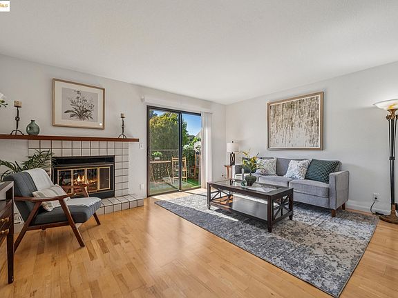 Welcome to 518 Kains Ave#103, a beautifully updated townhome-style condo in a boutique 4-unit complex at the heart of Albany. This two-level home offers a floor plan with great flow, hardwood flooring, generous storage, and abundant natural light from three south-facing windows. On the first floor, it greets visitors with a fireplace, guest half bathroom, and a breakfast bar, in addition to comfortable dining and living spaces. The kitchen is well-maintained with solid wood cabinets and comes with a brand new stove. The second floor features two spacious bedrooms with large walk-in closets and hardwood flooring. The main bathroom area has two large countertops, toilet and tub and has been refreshed with new vanities, mirrors, lights, toilets. Additional upgrades include new faux wood blinds and fresh paint throughout. The unit also enjoys a private balcony with serene Albany views, perfect for morning coffee or evening relaxation, and two parking spaces with additional storage in the carport, which offer great convenience in this popular residential neighborhood. The home is particularly well located, steps away from El Cerrito Plaza, Solano Avenue, BART, and the top-rated Albany schools. In move-in ready condition, it combines comfort, style, and rare accessibility.