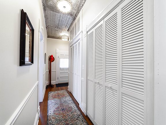 Beautiful original hardwood floors, decorate tin ceilings in the bedrooms. 3 bedrooms on the main level with an open floor plan and cozy wood burning fireplace.