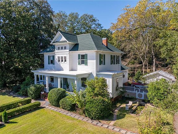 This remarkable American Foursquare residence is more than a home, it’s a piece of Palmetto’s history. Built in 1905 by former mayor Thomas P. Arnold and proudly listed on the National Register of Historic Places, this timeless property gracefully sits on 2.27 acres surrounded by mature trees, lush gardens, and the unmistakable charm of small-town Southern living. If you are an enthusiast of true-to-time period historic homes than this is the one for you. The quintessential southern rocking chair front porch invites you to slow down and stay awhile. Inside, you’re greeted by a grand foyer, wide and warm, that sets the tone of the beauty that will unfold in the rest of the home. The original hardwood floors that carry throughout, and an exquisitely preserved staircase with rich wood balusters that tell stories of generations past, original doors, stained-glass windows, and fine millwork capture the craftsmanship of another era, while thoughtful updates make the home beautifully livable today. Original pocket doors connect gracious main-level spaces, a formal living room lined with built-in bookshelves, and a dining room anchored by a built-in glass-front whiskey cabinet. Every room reveals a detail to admire: intricate wood trim, vintage lighting, and fireplaces that lend depth and personality. Off the kitchen, a charming built-in hutch in the butler’s pantry provides both function and character and a perfect spot for serving, display, or storage. The kitchen artfully blends period character with contemporary convenience, featuring painted cabinetry in a refined shade of green, granite countertops, brass accents, a 36” dual fuel range, a walk in pantry, an additional beverage cooler and space for casual dining. A full separate dining room is ideal for hosting gatherings, while the cozy breakfast nook in the kitchen overlooks the gardens for peaceful mornings. The flowing layout fosters easy connectivity between living spaces, yet each area maintains its unique appeal and identity. Enjoy a sunroom off the formal living room perfect for reading or reflection, and a screened-in back porch that invites you to enjoy outdoor living You can choose to make the bedroom downstairs the primary or upstairs, discover four spacious bedrooms and a hallway that feels woven into the home’s story. The additional primary bedroom offers a walk-in closet, while the upstairs bath delights with its original clawfoot tub, vintage vanity, and even a fireplace, a rare blend of comfort and historic charm. Outdoors, the 2.27 acre property unfolds into wide lawns, garden beds, mature fruit trees, a storage shed, and two detached garages, providing both practicality and endless possibilities for creative projects or future expansion. Located just minutes from Serenbe, this home offers the best of both worlds, the tranquility of small-town living and immediate access to a vibrant destination for dining, arts, and nature. This home is an heirloom property, where preserved history and modern livability are perfectly balanced, ready for its next chapter.