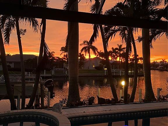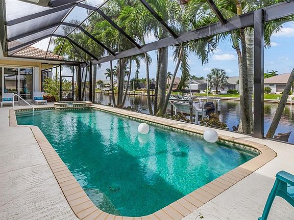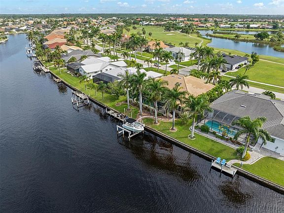 Waterfront living awaits in this beautifully maintained 3-bedroom plus office, 2-bath pool home with an oversized garage and more than 2,700 sq ft of living space in the highly sought-after community of Burnt Store Isles. Perfectly positioned on intersecting canals, this residence captures breathtaking water views, stunning sunsets, and lush tropical landscaping highlighted by stately Royal, Foxtail, and Christmas palms. Designed for both elegance and comfort, the open split-bedroom floor plan features vaulted ceilings, skylights, and pocket sliders that seamlessly blend indoor and outdoor living. Recent updates include a new roof (2023), newer appliances, and fresh interior and exterior paint. A stamped concrete circular driveway provides ample parking and easy access, while the welcoming front porch with French doors and etched glass adds timeless curb appeal. The oversized primary suite offers a private retreat with tray ceilings, dual walk-in closets, and a spa-inspired bath featuring dual vanities, a walk-in shower, soaking tub, and private water closet. Guest accommodations include two bedrooms and a shared bath with convenient pool access. You’ll love spending time outdoors with a covered lanai, heated pool and spa, and a 45-ft concrete dock equipped with electric and water, plus a 10,000 lb boat lift providing direct access to Charlotte Harbor and the Gulf via Alligator Creek (sailboat water). For added peace of mind, the home includes electric roll-down, accordion, and panel shutters for full storm protection. Ideally located near I-75, Punta Gorda Airport, historic downtown Punta Gorda, Fishermen’s Village, and the Yacht Club. Optional membership is available at Twin Isles Golf & Country Club, featuring an 18-hole championship golf course, tennis courts, swimming pool, and a vibrant clubhouse with indoor and outdoor dining plus numerous social activities. Nearby attractions include PicklePlex with 24 pickleball courts, fine dining, and boutique shopping. There’s always something happening—from international art exhibits to weekly farmers markets, music festivals, and holiday celebrations. It’s truly a lifestyle like no other. Easy to show—schedule your appointment today and don’t miss the virtual and 3D tours!