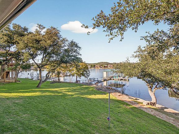 Experience lakeside living on the peaceful northeast side of Lake Buchanan. This property features 100 feet of deep, northeast-facing cove waterfront, offering beautiful Hill Country views while remaining sheltered from main-lake noise and waves. Even during recent drought conditions, the water off the dock was approximately 12 feet deep, providing reliable access and usability. The home has been pre-inspected and is serviced by a well and septic system. Enjoy lake breezes from the spacious patio, positioned above the flood elevation for added peace of mind. A large metal floating dock provides direct access to the water, and a detached garage across the street with oversized doors is ideal for boat or RV storage. Located just minutes from Burnet grocery stores and historic Main Street, this waterfront retreat combines privacy, convenience, and recreation in one of the Highland Lakes’ most scenic settings.