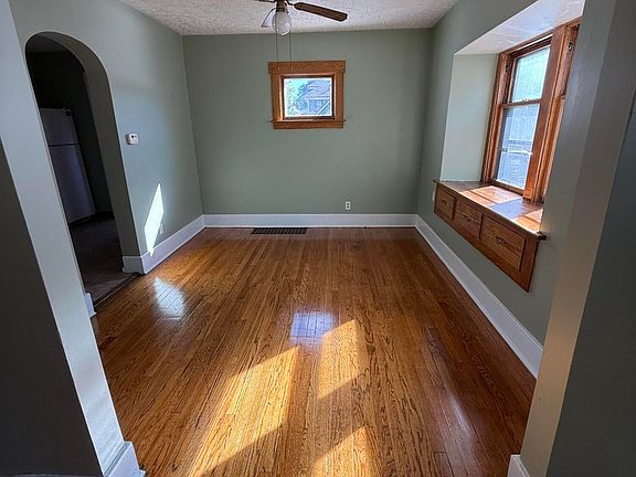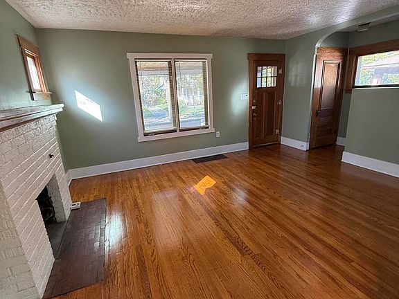 This classic Lansing 3-bedroom, 1-bath home offers comfort, functionality, and character throughout. The upstairs features three bedrooms and a full bath, with one bedroom offering access to a private walkout porch — perfect for morning coffee or evening relaxation. The kitchen comes equipped with a dishwasher and garbage disposal, and opens to a bright dining area with built-in storage. The spacious living room includes a cozy gas fireplace and gleaming hardwood floors that continue through the dining room. Additional highlights include a full basement with washer/dryer hookups and plenty of storage, a covered front porch perfect for relaxing, and a mudroom with a separate rear entrance. Outside, you'll find a fenced backyard and a 1.5-car detached garage.