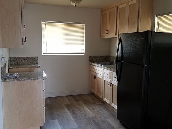 Modesto Near Downtown - Upstairs Large Studio, remodeled in 2019 with lux wood vinyl, kitchen cabinets and counter, blinds, New 6 panel doors. Walk in shower, New paved parking lot area, Dry landscape, Owner pays w\s\g and utilities MID