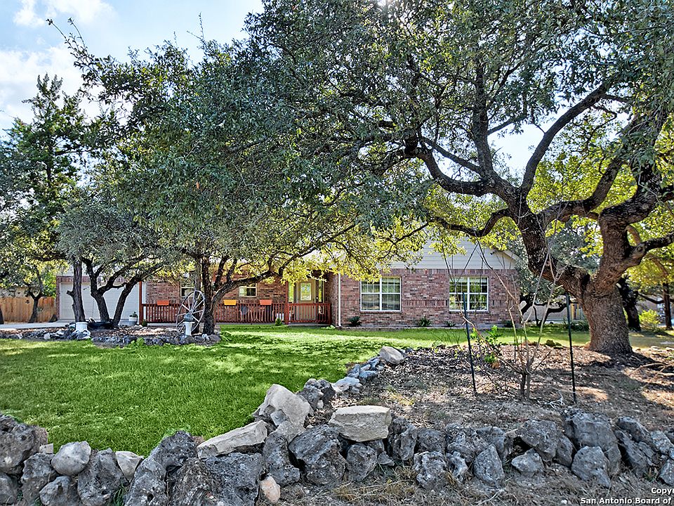 Located in the heart of Timberwood Park set on a beautiful 3/4-acre, tree-studded lot, this spacious single-story home with bonus space offers classic Hill Country charm, abundant wildlife, and room to spread out-inside and out. With 3 bedrooms, 2 baths, and an expansive open-concept living area, this property delivers both comfort and potential in one of San Antonio's most sought-after acreage communities. Inside, you'll find a wide-open living room anchored by large windows that flood the space with natural light, tray ceilings with recessed lighting, dual ceiling fans, and tile flooring throughout the main areas-perfect for entertaining or everyday living. The generously sized kitchen features solid wood cabinetry, granite countertops, stainless steel appliances, and a roomy island that adds extra prep and storage space. The adjoining dining area offers peaceful views of the backyard and an easy flow for family gatherings. The spacious primary suite includes a tray ceiling, large picture window overlooking the oak trees, and a private bath with a separate shower, soaking tub, and an extended vanity. Secondary bedrooms are well-sized with ample closet space, and the additional flex room can easily function as a home office, hobby room, or study area. Step outside and enjoy true Hill Country living-towering mature oaks, shaded lawn areas, natural landscaping, and frequent visits from local deer create a serene outdoor retreat. The covered front porch and large yard offer endless potential for outdoor seating, entertaining, or future enhancements. R1esidents enjoy spacious lots, beautiful scenery, and access to a renowned 30-acre private neighborhood park with a fishing lake, pool, sports courts, clubhouse, and regular community events. All of this with no city taxes and just minutes from shopping, dining, and top-rated Comal ISD schools. A rare find on a large lot with privacy, wildlife, and timeless charm-518 Oracle Dr is your chance to bring your vision to a highly desirable Hill Country setting. Come see it today!