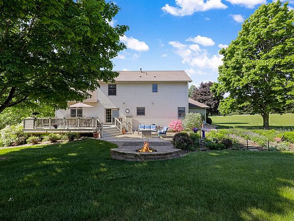 Welcome to this beautifully maintained south-facing home, perfectly situated amongst mature trees on over 2 acres in a serene cul-de-sac. The living room boasts a stunning stone fireplace and custom built-ins, while the kitchen features elegant quartz countertops and a modern sink. Enjoy the abundance of natural light streaming through daylight windows and the spacious feel provided by 9-foot ceilings. Convenience meets style with main level laundry, and outdoor enjoyment is guaranteed with an above-ground pool, a large deck, and a patio with a firepit - the perfect space for a backyard BBQ. Other notable features include a formal dining room with built-ins, a 3-car garage with ample storage space, a lower level sauna, Hunter Douglas window treatments throughout, Low E Andersen triple pane windows and so much more! This home is a perfect blend of comfort and luxury in a peaceful setting. Easy access to 94 and close to conveniences. Schedule your private tour today!