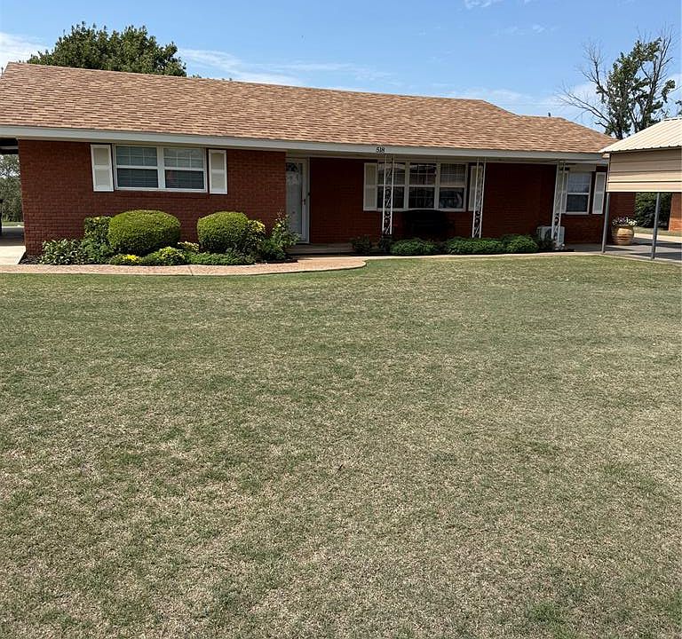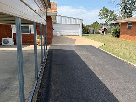 This brick home has 3 bedrooms, 2 baths, basement, workshop, 2 living areas and much more! This property has a large attached garage plus 2 carports, fenced backyard, and plenty of shade for watching the Oklahoma sunsets.
