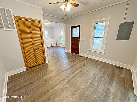 Welcome to 518 S. Grove St. A 3 bed 2 full bath BG home with updates throughout! Welcoming covered front porch - perfect for sun rise gazing & morning coffee. Inviting Living Room lead opens to Dining Room, both w new flooring & paint. Beautiful kitchen remodel features new cabinets, flooring, can lighting, counter tops, stainless sink & brand-new microwave, dishwasher & oven! Ideal 1st floor primary bed with new carpet/paint/ceiling fan. Updated 1st floor bath w tub/shower combo & access to storage. Brand new second floor bathroom added in '25, new vanity, toilet, flooring & tub! Spacious second bedroom features a double closet and third bedroom completes the 2nd floor. Nice rear cover porch includes an attached storage room. DEEP backyard w ample parking, storage shed & privacy fencing on North & South side. GREAT central BG location, close to schools, parks & downtown BG shops, restaurants & events! NEWS IN 2025: Roof with tear off, flooring & paint throughout, added 2nd bath upstairs, updated 1st floor bath w new doors, updated plumbing & wiring throughout, kitchen cabinets, countertops, white vinyl fencing, professionally landscaped, ramp to back entry, downspouts, concrete driveway extension, window shutters. Possession at closing!