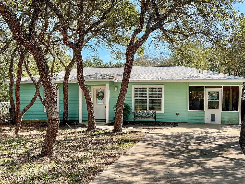 Nestled beneath large shade oak trees, this fully furnished beach cottage is the perfect coastal retreat! A welcoming side screened porch invites you to relax before stepping inside to a playful, light-filled interior with fun coastal charm. The semi-open living space flows into the kitchen, where a window over the sink is perfect for daydreaming. Double doors open to a covered back patio, overlooking a spacious, fully fenced backyard—ideal for gardening, entertaining, or even adding a pool and a storage shed for convenience. The driveway has ample room to park your boat and toys for your next bay adventures. Just a few blocks from the Rockport Arts District, Aransas Bay, and the beach, it’s time to get your golf cart ready and enjoy the best of coastal living!