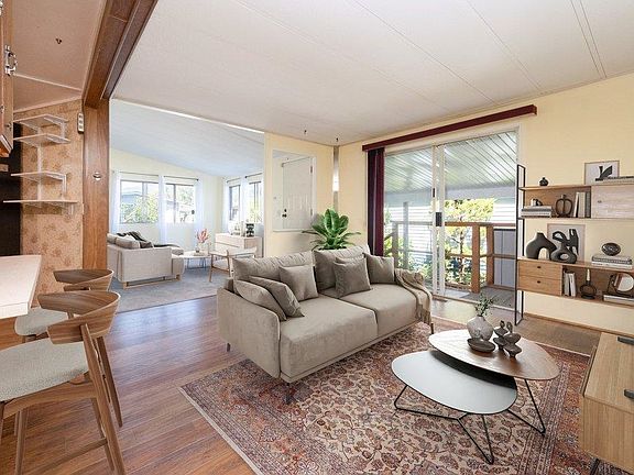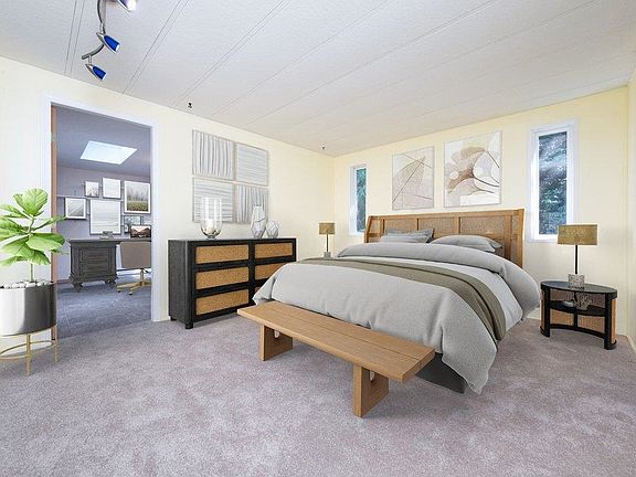 Outstanding privacy in this wonderful culdesac location. One of the the largest homes at 1352 Sq ft, 2 bedrooms plus large office/3rd Bedroom and 2 baths. Enjoy views to Sentinal Hill or snow-capped views to Holyburn as you relax in your living room. The bright kitchen opens to the dining and large family room. Master Bedroom is large and has a spacious ensuite with walk in shower and plenty of storage. Just off the master bedroom is a large office/ 3rd bedroom w/skylights that opens with sliders onto the fully covered 13’ x 11’ deck space. A private low maintenance garden w/shed. are all around this home. One of the few on a full concrete pad. Roof new in 2013. Park is 55+ only with no rentals allowed. Pets okay. Call for further Park Details including rules and regulations.