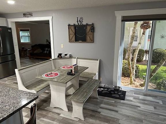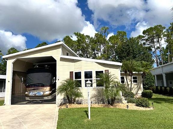 Spend your winters in sunny Florida and travel America during the summer with this gorgeous MotorPort home located in a premier gated 55+ community. This spacious 2-bedroom, 2-bath home offers 1,450 sq. ft. of living space and has been beautifully updated throughout. As you enter, you'll be greeted by bright natural light, an open layout, and elegant laminate flooring in the main living areas. The kitchen has been fully remodeled with granite countertops, top-of-the-line stainless steel Frigidaire Gallery Series appliances, and modern finishes. Both bathrooms have also been renovated from top to bottom, adding style and functionality. Enjoy multiple living spaces, including a sunroom, studio, and screened porch, plus an elevated deck overlooking lush, professionally landscaped grounds. The home also boasts new double-pane insulated windows, tinted glass doors, and electric blinds for comfort and efficiency. The MotorPort is designed for travelers, complete with 30- and 50-amp electric service, sewer hookup, and plenty of space to park your motor coach. After a day of adventure, relax in your private 2-person hot tub or take in the views from your private balcony. Additional highlights include: Brand new A/C in 2025 Insulated and wired workshop for hobbies or projects Exceptional natural light throughout Beautifully maintained and upgraded by the current owner This home is the perfect blend of comfort, convenience, and adventure-ideal for active adults who want to enjoy Florida living at its finest.