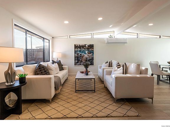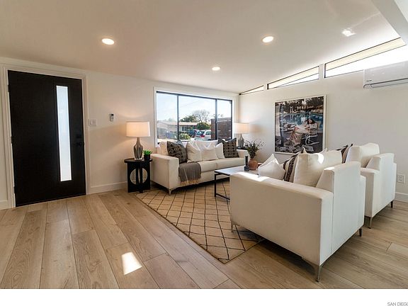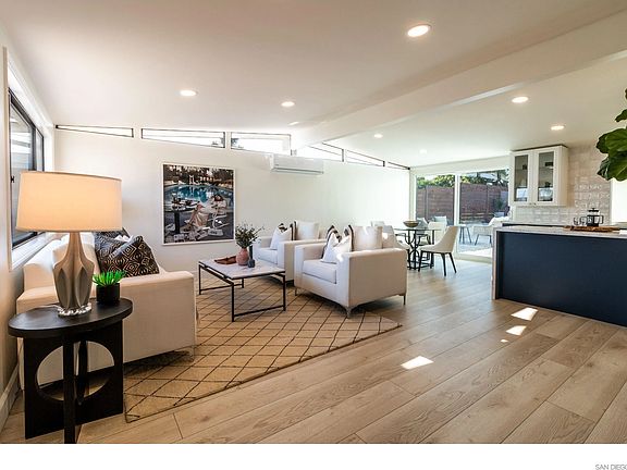 Fully renovated 3 bedroom 2.5 bath mid century modern home in the San Diego community of Clairemont! No expense was spared in the complete remodel of this home. Marble countertops, brand new kitchen with LG appliances, luxury laminate floors, beautifully tiled bathrooms, new roof, new mini split system, new hot water tank- all of which lead into a beautiful backyard oasis with a pool and designer landscaping with low maintenance turf in the front yard and back! Complete privacy with a brand new fenced in backyard. Other updates include, new windows, new garage door and opener, new interior and exterior doors, new drywall, recessed lighting, the list goes on!