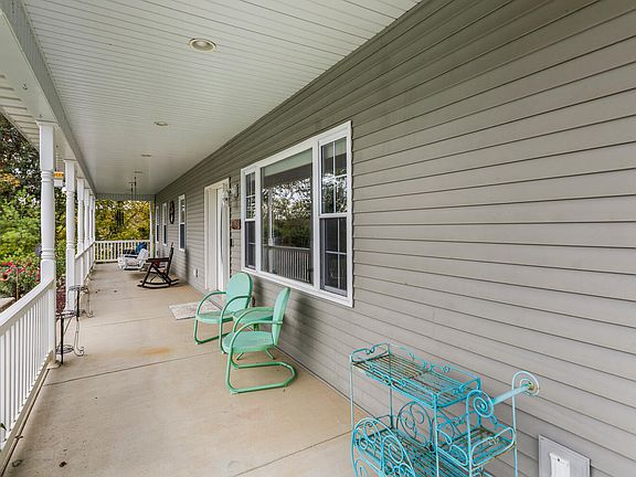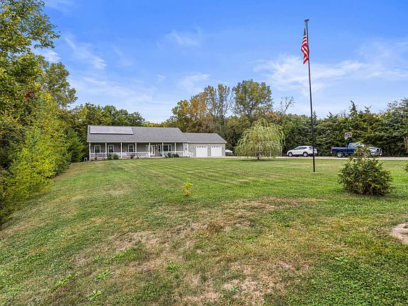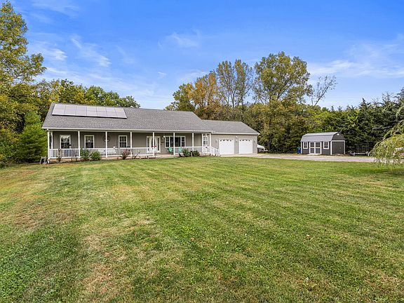 Nestled on 7.26 peaceful acres on the outskirts of town, this one-of-a-kind property offers the best of both worlds - the tranquility of a wooded retreat with the convenience of nearby amenities. The property's natural setting features mature trees, winding trails, a small creek, a tree stand, an elevated hunting blind, and even a food plot, creating an outdoor paradise for nature lovers, hunters, and anyone seeking a private escape. A firepit area in the clearing makes the perfect gathering spot for family and friends under the stars. Step inside this well-designed ranch home and experience an inviting open floor plan with warm hardwood flooring throughout the main living spaces. The spacious living room flows seamlessly into the dining area and gourmet kitchen, where you'll find a large island with breakfast bar, abundant cabinetry, and all stainless steel appliances-including oven/range, refrigerator, dishwasher, microwave, and range hood. Just off the kitchen, you'll appreciate a large walk-in pantry, laundry room, and direct access to the oversized garage with high ceilings, excellent storage, and room for a workbench or hobby area. The main level primary suite provides a relaxing retreat, complete with dual walk-in closets and a spa-inspired bathroom featuring a soaking tub, separate shower, and dual-sink vanity. The main level also opens to a full-length covered front porch, perfect for enjoying your morning coffee, and a large covered back deck ideal for entertaining or grilling while overlooking the wooded backdrop. The fully finished walk-out basement expands your living space with a massive family room perfect for a theater, game, or playroom. You'll also find two additional bedrooms, a full bathroom, a bonus room, and a huge unfinished area offering incredible storage potential and easy access to mechanicals. The basement leads out to a large concrete patio where you can relax and enjoy peaceful views of nature all around. Recent updates and extras include solar panels by Route 66 installed in 2024, a new septic system in 2022, and Culligan water treatment equipment added in 2021. This home is equipped with an efficient geothermal heating and cooling system, providing year-round comfort while significantly reducing utility costs compared to traditional HVAC systems. A lofted garden shed provides additional outdoor storage, while the backyard offers 3 apple trees and 1 pear tree for seasonal enjoyment. The home's thoughtful design and energy-efficient improvements provide comfort, style, and sustainability for years to come. From sunrise coffee on the porch to sunset strolls along wooded trails, every moment here invites you to slow down and appreciate the beauty that surrounds you. If you've been searching for a home that combines acreage, modern living, and unmatched privacy-this is the one!