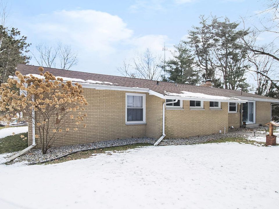 Want the country feel but close to everything? This Unique style all brick ranch is waiting for you, updates you will love, overflowing with natural light, Vaulted ceilings, new white kitchen, stainless steel appliances, breakfast bar, updated bathrooms, freshly painted, gas fireplace, new flooring, large master with 1/2 bath, full basement, provides plenty of storage. Lot size 1.7 acres, plenty of room to build your pole barn/outbuilding, Mechanical updated, water heater 2020, septic 2019, well 2019.