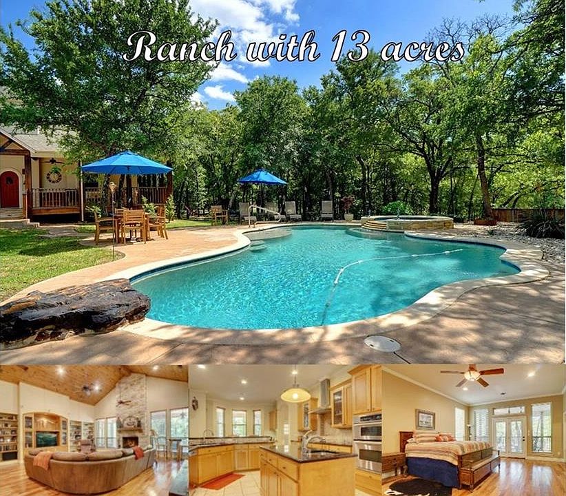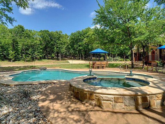 13.2 Wooded,private acres! Creek Lot*Pond*2 shops w electric & water*Survey*Longhorn on property *Appraised $645.000*See NTREIS*Ag exemption*33 x 9 Deck, wrap around porch area w IPE Decking,screened porch*Roof 2016*Brazilian Hardwoods*Great room w beams*2nd level w Media*Split study up w 2 workstations*3 bed down*1 bed up*2 master suites*Kitchen w large buffet, granite counters, 2 sinks, Butlers pantry, Oliveri sink, Halogen induction 5 burner cooktop, stainless app*Master w coffee bar,maple cabinets, kitchenette, Zuhne sink, oval tub, cedar closet, shower w multiple jets*Guest suite down w French doors*Carpet recently replaced *5 HVAC units*Rustic feel*Working*New roof & survey*MINERAL RIGHTS DO NOT COVEY