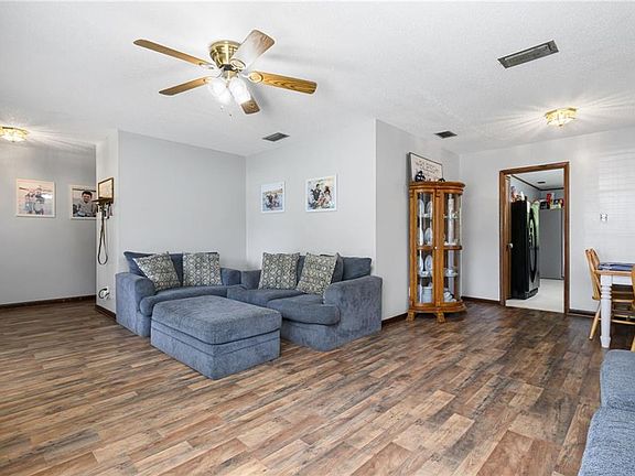 Tucked away in a quiet cul-de-sac, this brick home sits on a spacious half-acre lot. Inside, you’ll find laminate flooring, freshly painted interiors, and a welcoming layout featuring a living room, family room (bonus den), eat-in kitchen, and open-concept dining area — perfect for everyday living or entertaining. The kitchen showcases freshly painted cabinets and white countertops. The primary bedroom offers private access to the back porch, creating a relaxing retreat. Enjoy peace of mind with an HVAC system that was replaced June 2023 and a security system installed April 2023. The septic tank was inspected and cleaned in June 2022, ensuring this home is truly move-in ready. The large backyard includes a shed/workshop, and the home is conveniently located near local schools and shopping. Buyer to verify all information.