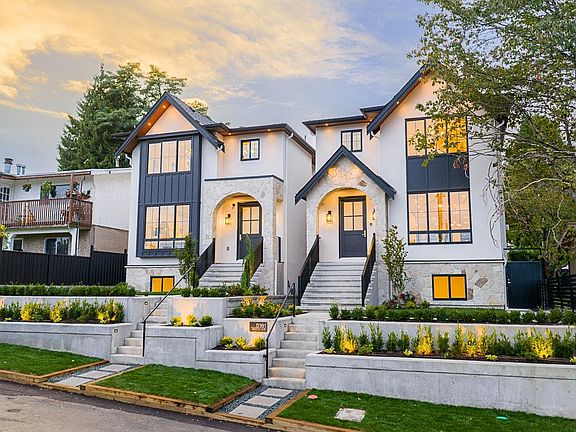 Step into Uno on Booth—a brand new, fully completed half-duplex in Burnaby’s coveted Forest Glen neighbourhood. Thoughtfully attached at a single point, this home offers the privacy of a detached residence. Built by renowned Black Tusk Homes, it features a main floor bedroom with full bath, custom millwork, 42” Fisher & Paykel fridge, 6-burner gas stove, radiant in-floor heating, gas fireplace, and an efficient heat pump with A/C. Upstairs offers spacious bedrooms with a bright, functional layout. A legal 4-bed, 2-bath suite below provides excellent flexibility for income or extended family. Detached garage, extra parking pad, and fenced yard. School catchments: Chaffey-Burke, Moscrop & Marlborough (French).