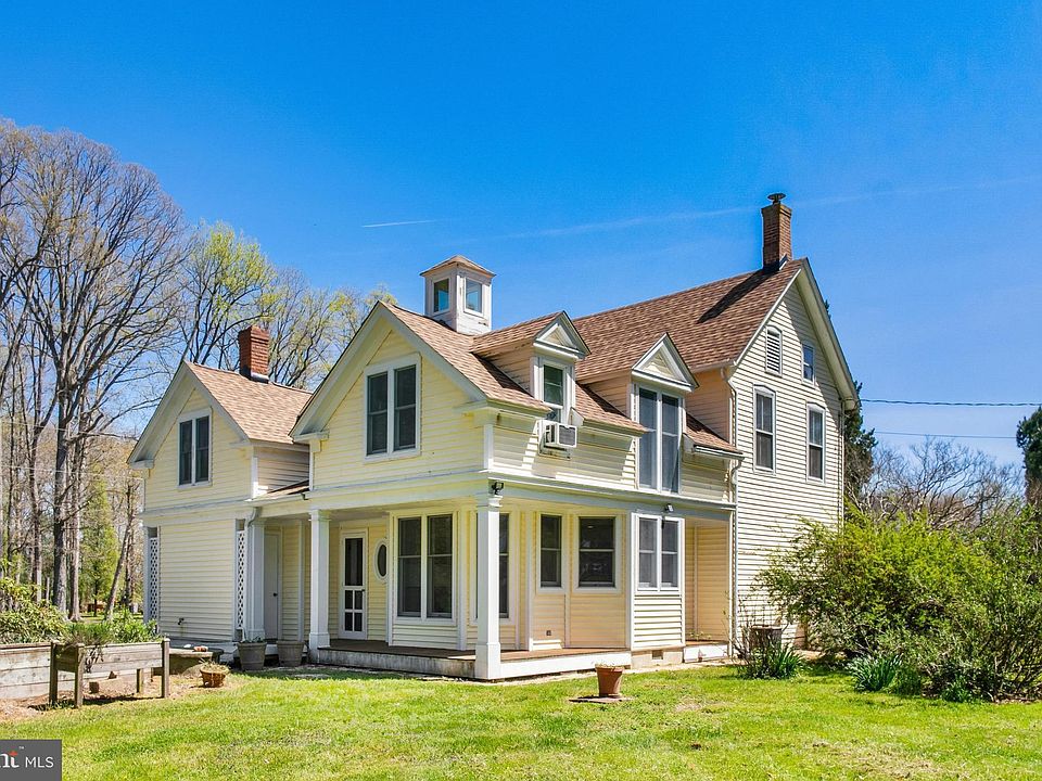 This elegant circa early 1800's farmhouse was renovated/updated in 1994. It is beautifully situated on a large, one and a half acre corner lot. The floors are mostly original. The roof was replaced in 2021. The kitchen has ample storage and is flooded with lots of natural light. Enjoy morning coffee on the window seat, looking out onto the gardens and nature. The perfect spot for bird-watching. There is a studio loft above the kitchen which takes advantage of the abundant natural light. There is also a loft that serves as an office nook above the family room. Amply-sized formal dining room, family room and living room, along with a half bath. One of these rooms could possibly be converted as a first-floor primary bedroom. Two bedrooms and full bath on the second floor. Two fireplaces, original charm galore. A Brazilian hardwood-floored side porch leads to the delightful cutting garden, as well as a walkway leading to the shed that served as a workshop. PLEASE NOTE - the pictures with furniture have been virtually staged, to give you an idea of how beautiful the rooms will look furnished. Just a matter of minutes to downtown Rock Hall to see a concert at the Mainstay, or to Chestertown's Saturday morning farmers market. Very close to the Rock Hall Yacht Club and multiple public boat launches and marinas. Served by County sewer - there is no septic to worry about. There is still renovation work left to be done to this country beauty, but if you love and appreciate classic older homes, it is well worth the effort.