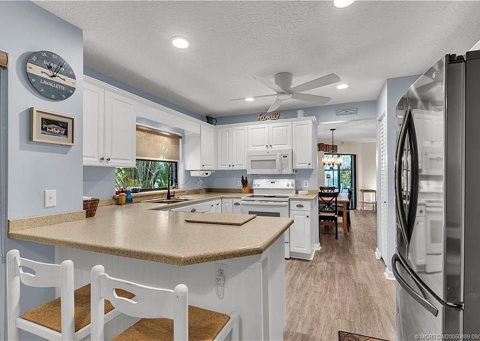 Welcome to Schooner Oaks where you can enjoy the Intracoastal feel with a community fishing pier that includes a beach/gazebo, and a kayak launch minutes from the inlet. This community is beautifully landscaped with live Oaks throughout and also offers a community pool/hot tub, tennis/pickleball courts, small gym, and a clubhouse. This spacious first floor condo has 3 bedrooms/ 2 baths/ a 1 car garage. There is an enclosed patio that has A/C as well. A/C was installed late 2018 and water heater was 2020, many other upgrades done after 2022 including most appliances (please ask your agent or listing broker for detailed list of upgrades). Great primary residence or weekend getaway!
