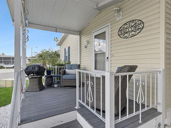 Welcome home to this impeccably maintained 3-bedroom, 2-bathroom Homes of Merit RV Port Home in the highly desirable Phase 5 of Mount Olive Shores. The impressive extra-large RV port spans 57 feet long, 15 feet wide, and 14 feet tall, providing unparalleled space for any size motorhome, even with the slides extended. Step inside to discover a thoughtfully designed split bedroom floor plan, featuring expansive living, dining, and kitchen areas that are perfect for entertaining. Enjoy your mornings or afternoons on the peaceful covered porch at the front of the home. The kitchen is a chef’s dream, showcasing updated cabinetry, solid surface countertops, and high-quality stainless steel appliances, including a brand-new dishwasher. The master bathroom has been beautifully remodeled, adding a touch of luxury to your daily routine. Throughout the home, the elegance continues with ceramic tile in the kitchen and bathrooms, complemented by stylish luxury vinyl flooring in the living and dining areas, as well as in the guest closets. Modern lighting and ceiling fans throughout enhance the inviting atmosphere. This home features a newer roof and energy-efficient dual-pane windows, complemented by fresh trim, ensuring both comfort and style. Underneath, all-new ductwork and a new vapor barrier provide confidence in the home’s infrastructure, with a foundation certification letter available for your peace of mind. Ideally situated just minutes from I-4, you’ll enjoy seamless access to a variety of shopping outlets and malls, top-notch medical facilities, Tampa and Orlando International Airports, and the many attractions of Central Florida, all within an hour's drive. Mount Olive Shores is a deed-restricted Class A motorhome community, requiring residents to own a Class A motorhome during their first year of accumulated residency—an opportunity to immerse yourself in the vibrant lifestyle this community offers. Don’t miss out on the chance to make this exceptional home your own!