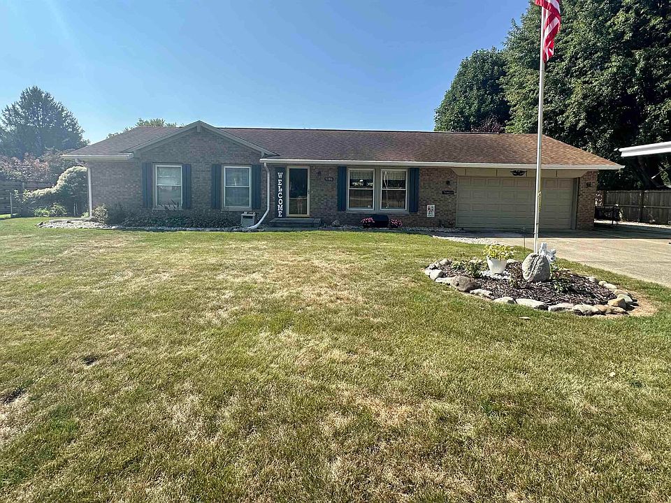 Meticulously maintained all brick ranch in a rural sub division. The kitchen was recently remodeled and features stainless steel appliances, Corian countertops, and a spacious island with an overhang for bar stool seating. This home offers three bedrooms. One bedroom is currently equipped with a soaking tub but this could easily be removed to fit a buyer's needs. The full bathroom has been tastefully designed and offers a walk-in tiled shower. Outside you'll find a large covered deck that overlooks a beautifully landscaped backyard, fully enclosed with a chain link fence. 20x20 storage shed. Roof is less than 10 years old. New gutters, downspouts and leaf guards in 2023. Replacement windows throughout. All electric.