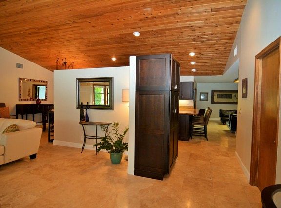 Just Reduced and Priced to Sell!! Meticulously maintained jewel in Stuart's desirable Rocky Point. 4br+den(off master), 3ba over 2400 living sq. ft. pool home on .43 acres boast beautiful curb appeal with oak & fruit trees on property. Warm and inviting entry with cedar vaulted ceilings. Newer travertine marble tile throughout and wood floors in back bedroom. Remodeled master bath with cherry cabinetry, granite counters, and step down shower. Upgraded gourmet chef's kitchen perfect for entertaining with tons of storage, cherry cabinets, granite counters, gas stove, and stainless steel appliances. Kitchen cabinets include pull out & soft close drawers. Built-in pantry with extra fold away storage and there is tons of extra storage throughout the home!