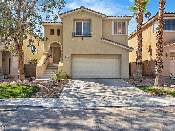 area, and 2 1/2 bathroom house is perfect for those seeking comfort, relaxation and convenience. Step inside to a fully equipped kitchen with a breakfast bar, sleek granite countertops, and top-of-the-line stainless steel appliances. The upstairs primary bedroom is a retreat itself with a custom walk-in close including the ensuite bathroom with dual sinks, a shower, and a Roman-style bathtub for a touch of luxury. No carpet anywhere! Travertine tile and modern hardwood laminate throughout the house. Unwind after a long day under the covered patio or relax in the long balcony to enjoy the beautiful mountain view. Located in the vibrant Southwest, within a 2-5 min. drive you have EOS, Albertsons, Urgent Care, Dog Grooming, Numerous NEW restaurants, Target, Silverton Casino...The list goes on!! Don't miss out on this fantastic opportunity before it's gone!