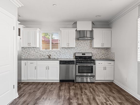 Step inside to discover a bright, open layout with gorgeous finishes throughout. The modern kitchen features crisp white shaker cabinets, elegant quartz countertops, and a striking marble mosaic backsplash. Durable wood-look laminate flooring flows seamlessly through the living spaces, while the bathrooms and laundry area feature sleek tile for easy maintenance.