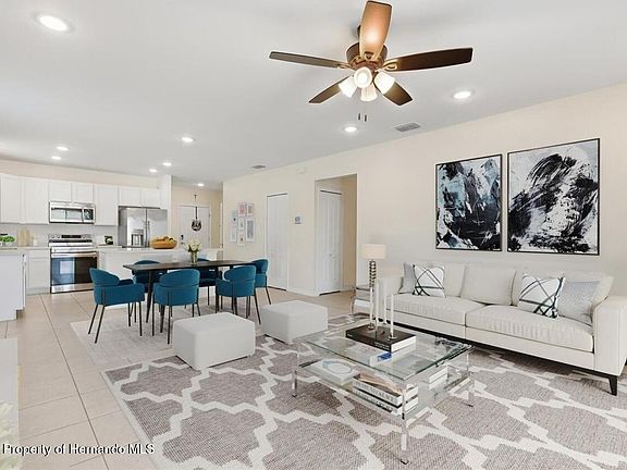 Welcome to this LIKE NEW 2022 built home offering 3-Bed, 2-Bath, + Office/Media room, 2 - car garage & 1560 heated square feet (2,000 total sqft) of modern living on a 0.23 acre lot in the heart of Spring Hill. This residence feels practically brand new, featuring a bright open layout with a spacious living and dining area, a contemporary kitchen with stainless steel appliances and stunning quartz counters, tile flooring in the main spaces and a functional split bedroom design. A separate family room adds valuable versatility and easily serves as a dedicated office, study, media room or even a fourth bedroom if desired. The primary suite provides a generous walk-in closet and dual vanity sinks with matching countertops in the bathroom, while the additional bedrooms offer comfort and privacy for family or guests. The oversized lot provides nearly a quarter acre of usable space with room for a pool, outdoor living, recreational parking or future expansion, all with complete freedom thanks to no HOA, no CDD, no restrictions and no flood zone. With block construction, an indoor laundry room, a two car garage and public utilities, this home delivers the low maintenance benefits buyers want in a newer construction property. Located close to highly rated Spring Hill schools, medical facilities including Bayfront and HCA hospitals, and just minutes from major shopping, dining, parks and commuter routes to Tampa, this property blends convenience, space and modern comfort in an outstanding location, making it a must see!