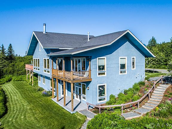 Breathtaking Views & Location! Gaze upon Kachemak Bay & 3 glaciers from this gorgeous open floor plan home with vaulted ceilings and a wall of windows overlooking the Bay. Built by master craftsman Paul Carter, this property includes everything one would expect in a luxury home. Over 4,200 sq ft for entertaining and hosting friends & family. Magnificent gardens and landscaping.