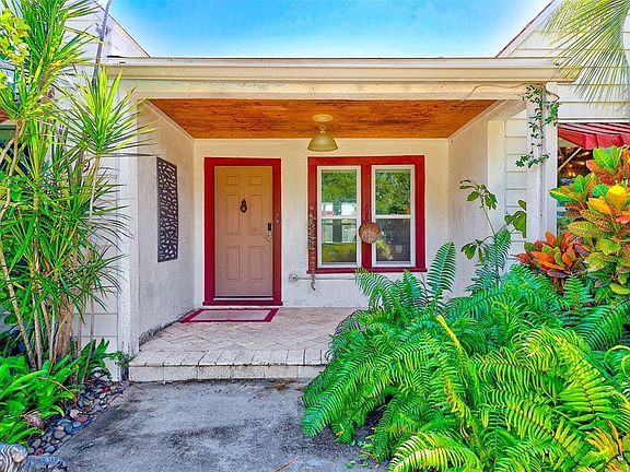 Step into Old Florida charm with this delightful 1925 bungalow that seamlessly blends historic character with modern conveniences. This two-bedroom, two-bathroom home showcases original architectural details including authentic doorknobs, doors, and soaring nine-foot ceilings that transport you back to the roaring twenties. The interior features tile and wood floors throughout, creating warmth and elegance in every room. You'll discover both a formal dining room and an eat-in kitchen space, perfect for everything from intimate meals to entertaining guests. The thoughtful 2015 renovation added a second bathroom while preserving the home's authentic charm, along with new air conditioning, updated ductwork, kitchen cabinets, and windows. The outdoor space truly shines with abundant room for entertaining, complete with potential for a fire pit area and gatherings under Florida's beautiful skies. The circular driveway adds both convenience and classic appeal to the property's curb presence. Located in the heart of Largo and situated in a non-flood zone, this home offers the perfect balance of historic charm and practical living. You're just minutes away from pristine Gulf beaches, the vibrant Largo Cultural Center, and convenient shopping destinations. Whether you choose to embrace innovative modern updates or preserve the timeless Old Florida character, this bungalow presents endless possibilities. The solid 1920s craftsmanship provides an exceptional foundation for creating your dream home in this desirable Largo location.