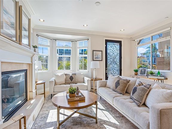 !!! Experience coastal luxury in this stunning custom-built home (crafted in 2013), ideally located in the heart of downtown Huntington Beach — just five blocks from the beach and two blocks from the park. Thoughtfully designed with impeccable craftsmanship, this newer three-story residence blends elegance, comfort, and modern amenities. The first floor welcomes you with a warm and inviting living room featuring a charming bay window and a striking fireplace with an elegant mantle. Overlooking the living room, the intimate dining area flows seamlessly into the gourmet kitchen, which is beautifully appointed with granite countertops, a sleek glass backsplash, stainless steel appliances, a walk-in pantry, and custom soft-close cabinetry. Both a full-size refrigerator and beverage fridge are included. Step outside to the private rear patio, complete with a new built-in barbecue and ample space for outdoor dining and entertaining. On the second floor, a spacious family room boasts soaring 23-foot ceilings and a corner fireplace — perfect for relaxing or gathering. This level also features two generously sized secondary bedrooms, each with its own en-suite bathroom. The luxurious master suite sits at the front of the home, offering a Juliet balcony, two closets, and a spa-inspired bathroom with marble finishes, a soaking tub, and a walk-in shower. The third floor offers a versatile fourth bedroom with a full bathroom, closet, and access to a sun-drenched rooftop deck — ideal for enjoying ocean breezes and sunset views. Additional upgrades include a smooth stucco exterior, dual-zone air conditioning, and a full driveway with alley access, providing parking for two to three additional cars — a rare find in this excellent neighborhood with NO HOA! This exceptional home perfectly blends modern luxury with beachside living, making it the ultimate coastal retreat.