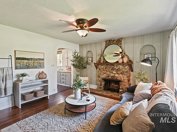 This one is a cutie! Now with an updated look and a new price! Welcome to your new home with no HOA in the heart of Downtown Nampa! This historic home has real hardwood floors that welcome you into the living room with a wood burning fireplace to cozy up to on those cold nights. Kitchen features a built-in seating area, updated flooring and lots of cabinet space. Downstairs an extra large laundry room, along with a third bedroom await you. Outside the large backyard is just waiting for you and your BBQS, quiet mornings and playful adventures. RV parking and a detached 1 car garage in the back alleyway rounds out the versatility. Plus, if that wasn't enough, this home has a new roof (2023), dishwasher (2024), new water heater (2025), new paint throughout, updated light fixtures and a whole lot of charm! Come see it today.
