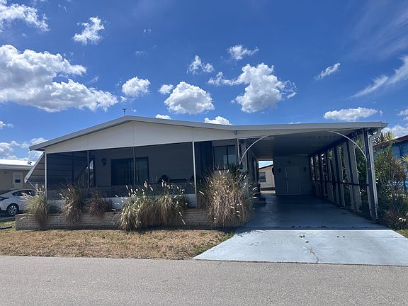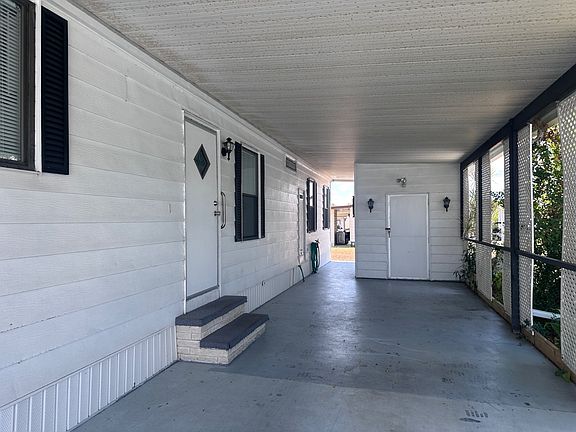 Move in ready and waiting for you! This home has been upgraded in so many areas. This home is cozy, bright, and very cheerful! It has 2 bedrooms & both recently received new carpeting. The master & guest bathrooms both have new vanities & commodes. The floors are new waterproof vinyl laminate flooring. The large galley kitchen comes with all appliances, including a new high-rise faucet and plumbing. It has laminate countertops and newly painted cabinets. The dining room has a built-in wall hutch, and high cathedral ceilings that gives a very open feeling. A new electric panel was installed in 12/2024. It has a lovely screened in porch with awnings. The carport is large enough to hold two cars and the shed houses the washer dryer. It is in a 55+ retirement community, pet friendly with two pools and all the amenities. Call today for more information.