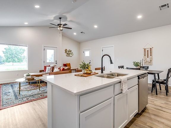 Spacious living area with a covered patio and two car garage. Quartz kitchen and bathroom countertops. Master bedroom with walk in closet and glass shower enclosure with seating. Kitchen features an island and pantry along with stainless steel appliances. Location is close to multiple highway system I-135, gas stations, restaurants, and grocery shopping center. Privacy fence partition and off street parking.
