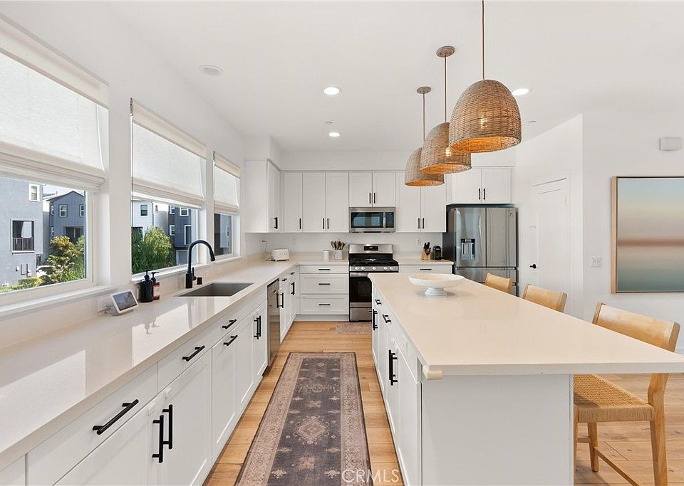 NEW TRADER JOES AND STARBUCKS COMING ACROSS THE STREET! Welcome to 519 Caleigh Lane, located in the coveted gated community of Twenty8 Walk - Where Modern Luxury meets the heart of Costa Mesa's vibrant dining and shopping scene. This community is being revitalized daily, unlike anywhere else in Orange County! Built in 2021, this stunning residence has had only one owner since it was built, and the property has been maintained in immaculate, like-new condition. Every space is bright, open, and thoughtfully upgraded, showcasing the perfect blend of modern design, comfort, and functionality. Inside, the first floor features a private suite with direct access to the 2-car garage, and a bathroom, ideal for guests, a home office, gym, or studio. The second level also has its own bathroom, and opens to a light-filled great room with high ceilings, and an open-concept kitchen with a large center island, stainless steel appliances, quartz counters, and an enclosed balcony perfect for morning coffee or evening relaxation. Upstairs, you’ll find three additional bedrooms and two full bathrooms, one of which is the spacious primary suite with dual vanities, a walk-in shower, and a custom walk-in closet. Energy efficiency meets convenience with owned solar panels and a tankless water heater. Ideally positioned near top-rated schools, world-class shopping and dining, golf courses, and the beaches of Newport Beach and Huntington Beach, this home offers the best of Southern California living—modern, low-maintenance, and effortlessly stylish.