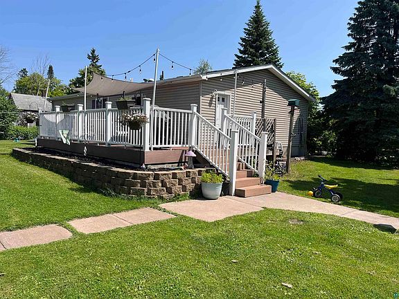 Almost half an acre in town! This turn-key 3 bedroom/2 bath home is on 6 lots and is centrally located near shopping, bus lines, Barker's Island/Lake Superior, and only a few minutes to Duluth. Updates to include; new beautiful flooring throughout, windows, roof, all appliances (except for the stove/range), and a new central air unit. Open concept style kitchen with a counter to put stools, along with a nice area for a dining table next to the patio doors. The large living room is bright and serene with privacy bushes surrounding the front. Ample storage and large closets throughout the home. All bedrooms are great sizes with the primary suite boasting it's own bathroom that features a separate shower and jetted tub. Beautiful large deck off of the back overlooking the fenced in park-like yard containing 3 pear trees and rhubarb. Large heated garage is 30x40 and can hold up to 6 vehicles. If you're looking for one-level living with a gorgeous yard and lots of space this is the one for you!