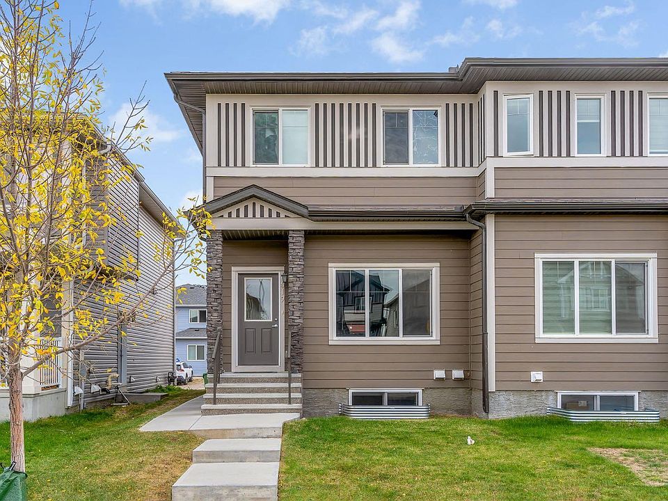 THE BEST PRICED Semi-Detached Home with Legal Suite Perfect for First-Time Buyers or Investors. Welcome to 519 Cornerstone Avenue NE, a beautifully crafted two-story residence offering over 1,900 sqft of living space in the lively Cornerstone community. This lovely home features a legal one-bedroom suite in the basement, complete with its own side entrance, full kitchen, bathroom, and private laundry making it an ideal opportunity for rental income or multi-generational living! The main floor is bright and open, with a seamless flow between the living room and modern kitchen, which boasts stylish cabinets and ample counter space. A handy mudroom and a two-piece bathroom complete this level. Upstairs, the primary bedroom is a cozy retreat with a walk-in closet and a private ensuite. Two additional bedrooms, a shared four-piece bathroom, and an upstairs laundry room enhance the home's practicality and comfort. Located in the desirable Cornerstone neighborhood, this home provides quick access to major roads like Country Hills Blvd and Stoney Trail, easing your daily commute. You'll also find nearby amenities such as restaurants, grocery stores, shopping centers, parks, playgrounds, CrossIron Mills, and Calgary International Airport all just minutes away! Whether you're a first-time buyer or an investor seeking a property with good cash flow, this home is a must-see. Schedule your showing today!