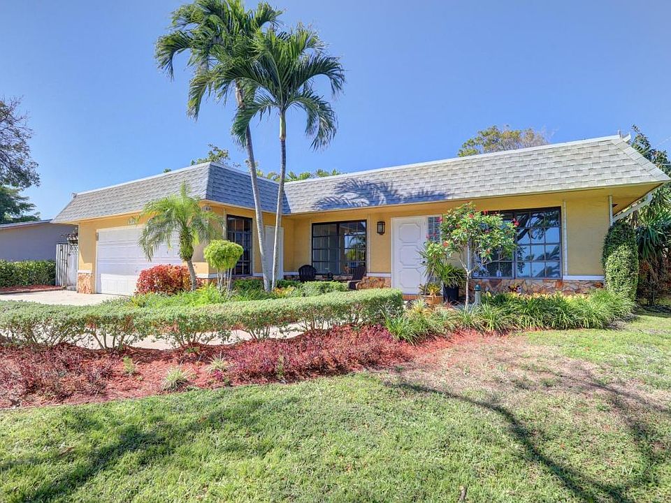 You really can have it all! Stunning, renovated home in desirable Tropic Palms located in east Delray Beach. Quiet neighborhood with no HOA only minutes to downtown and the beach. All the work has been done for you - 2017 roof, 2018 Rheem 2.5 ton 16 SEER A/C with a 5 year transferable warranty, new electric panel, and 2017 water heater. The interior of the home has been freshly painted and all of the popcorn has been removed. Upgrades include new bathrooms, 18'' porcelain tile in the living spaces, high end laminate floors in the bedrooms, custom closets in the owners' suite and one guest room, crown molding, and French doors. Kitchen has granite counters, soft close drawers, a new microwave and a breakfast bar. Laundry room is inside of the home and has cabinets and a sink. Oversized two car garage with plenty of room to store your tools and toys. Spacious covered patio is fully screened and has roll down shutters so you can enjoy the outdoors even when it is raining. Enjoy tranquil evenings in your very own tropical oasis with professionally designed landscaping and lighting, a pond (with a catfish and goldfish!), and is fully fenced. Home is zoned for Boca Raton Community High School. Come see it before it is gone!