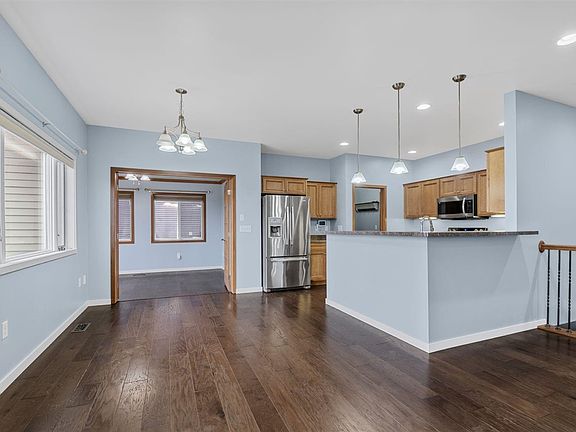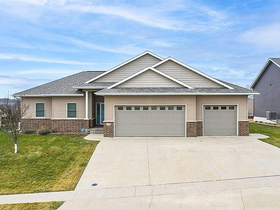 This well-maintained ranch is located in a family-friendly neighborhood, with easy access to I80 or I380 for fast easy commuting. A short walk to Deerview Park, and conveniently near Clear Creek High School, Elementary school, and two daycare centers (Sprout & Little Clippers). The main level has hardwood throughout, and tile in main floor bathrooms and powder room. Main floor also features a fireplace, and central vacuum system. The house is equipped with an ADT home security system. The main level boasts 3 bedrooms, 2 full baths, a half bath and convenient laundry on main floor. The kitchen features hardwood floors, under cabinet lighting, and stainless steel appliances. Appliances stay with the home. The primary bedroom is located on the main level and features hardwood floors, a spacious walk-in closet, and it's own private en suite with tile floors and shower. The nicely finished lower level features a wet bar, a theater room, two additional bedrooms, one full bath, a workout area, and a storage room. Huge three car garage, concrete drive. Step outside the back door and you'll find a treated wood deck overlooking the large fenced-in yard and a kid's playset (stays with the house). Come see for yourself this amazing home in Tiffin.