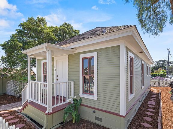 Welcome to the Jewel Box! Featuring beautiful Monterey Bay views, this masterfully remodeled home showcases meticulously curated high-end finishes & premium materials throughout. It is a 2 bed, 2 bath home that has been thoughtfully restored to honor its 1920's heritage while seamlessly blending timeless charm with modern conveniences. The fully updated & reimagined kitchen boasts elegant quartzite countertops, a farmhouse sink, & premium Bertazzoni appliances. Carefully sourced Douglas Fir flooring complements the original wood, flowing effortlessly from room to room. On cooler evenings unwind beside a custom built Carmel stone fireplace, or take a soak in your oversized tub. An artisan hand-crafted gate invites you into a lush garden retreat, while the updated garage offers flexible space for storage, an office, an artist studio or anything you envision. Ideally located near scenic walking trails, Cannery Row, & the Monterey Bay Aquarium, this is coastal living at its finest.