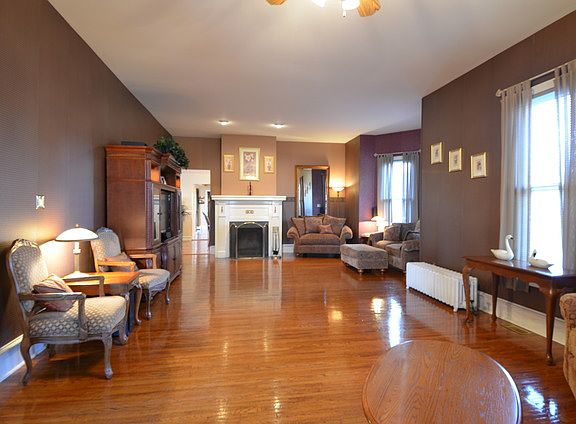 MUST SEE! Vintage home filled with UPDATES in beautiful Historic Downtown Lockport! The exterior boasts professional landscaping, a 3.5 car garage with built-in cabinets, covered front porch and a beautiful fenced in yard with deck and mature trees! Over 4600 square feet of vintage charm mixed with today's updated features!! The STUNNING interior boasts volume ceilings, warm decor, paneled doors, original moldings and wood floors! Step inside through a custom front door with stain glass side panels into the beautiful Foyer! On the main floor there is a formal Living room with bayed sitting area and a wood burning fireplace! An elegant Dining room with French door access to the side yard! A HUGE Family room with wet bar and gas fireplace! UPDATED Kitchen with CUSTOM 42" cherry cabinets, granite countertops, breakfast bar and a large Dinette! Also, on the main floor is a 5th Bedroom with HUGE walk-in closet and a Full Bathroom! The second floor offers 4 spacious bedrooms, including a Master Suite with Sitting area, walk-in closet, wet bar, fireplace, pine floors, private stairs entry and a luxurious bathroom with dual sinks, jacuzzi tub and a large shower with steam feature and multi-sprayer! Bedrooms 2 & 3 offer walk-in closets! APPLIANCES INCLUDE: 2 oven/ranges, 3 dishwashers, 3 refrigerators, 2 washers, 2 dryers and 2 hot water heaters (NEW 2011)! UPDATES: Drywall, insulation, sewer line, water line, front porch painted (2015), Fence (2015), Kitchen, Bathrooms (Hall Bath was most recent in 2014), Double hung windows (1993), Siding & gutters (2006). In addition, this home offers an income producing APARTMENT over the garage with separate address, private entrance, parking area, 1 bed, 1 bath, Recreation room, Study & a Kitchen which includes all appliances, oak cabinets, a pantry closet and stack-able washer & dryer! Wonderful location to quaint shops, dining and commuter train!