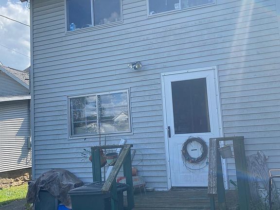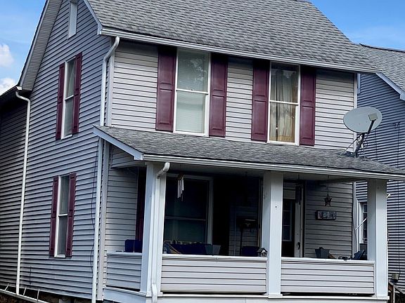 3 BR 1 bath home, vinyl siding, natural gas heat, 2 sheds. Wood flooring under carpet. Typical traditional home where you enter the LR, then the DR, then the kitchen and back porch. Upstairs are 3 BR, enclosed back porch, and full bath. There is some ceiling damage from a prior and repaired leak that will need attention. Home is being sold as-is. This is a great property for a rental or first-time buyer.
