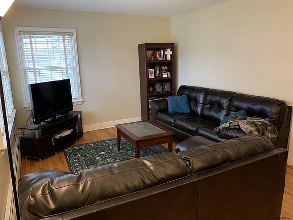 Great Beginnings or Downsizing Located in Glenville with no Village taxes, Public water and sewers. Home offers 2 bdrms and full bath on main floor, expanded large bdrm up. Den/ home office or school room. 1st floor laundry. Home could accommodate for 1st floor living. Zoned Hot water baseboard heating. B-Dry system installed. Attached garage with opener. Double fenced lot, 2 driveways for parking. Walk to Village, Collins Park, Restaurants, shopping. E Z commute to to Albany , Amsterdam and Cap Dist. Showings start Sat 10/31. Taxes quoted without exemptions.