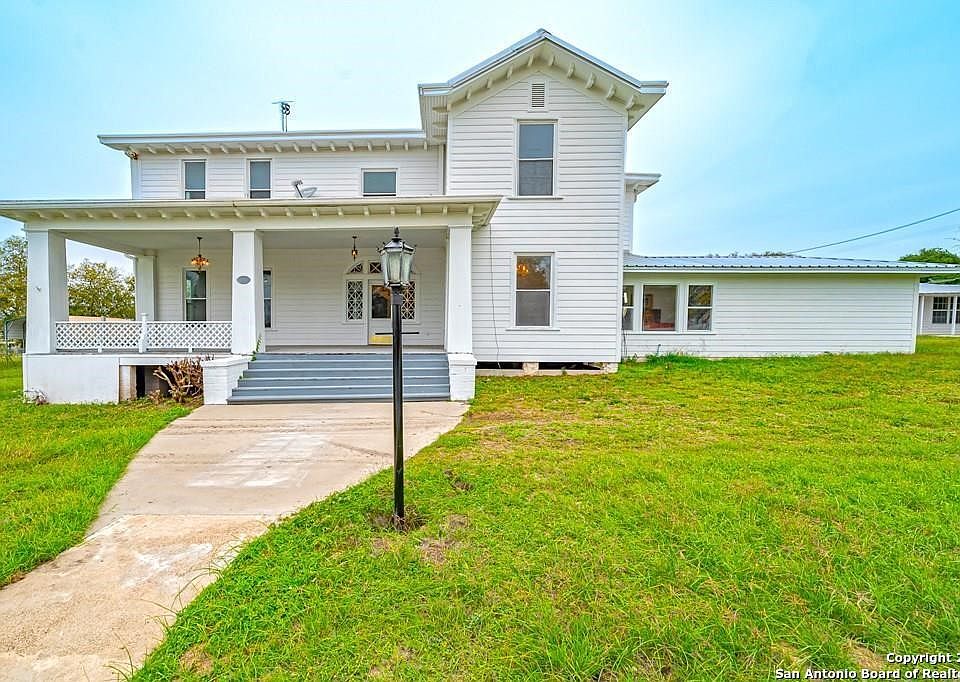 GLORIUS HOUSE...GLORIUS PRICE !!! A stately home located in a small town, ready for comfortable living, room for parties or a home business. This Prairie Style home features leaded glass, hardwood moldings and high ceilings. The modern comforts includes metal roof, double paned wood windows, CH/A and a new primary suite on the first floor. Each of the three upstairs bedrooms are generously sized and comes with their own full bath-ideal for hosting guests or accommodating a growing family. The rear of the home features an expansive great room, providing a warm and welcoming space for gatherings. Just outside, an entertainment-sized deck invites you to unwind or celebrate under the Texas sky. Additional highlights include a detached building used as an office-complete with its own bath-plus a garage and carport for ample parking. The fully fenced .877-acre lot offers privacy, space, and potential for gardening, pets, or further expansion