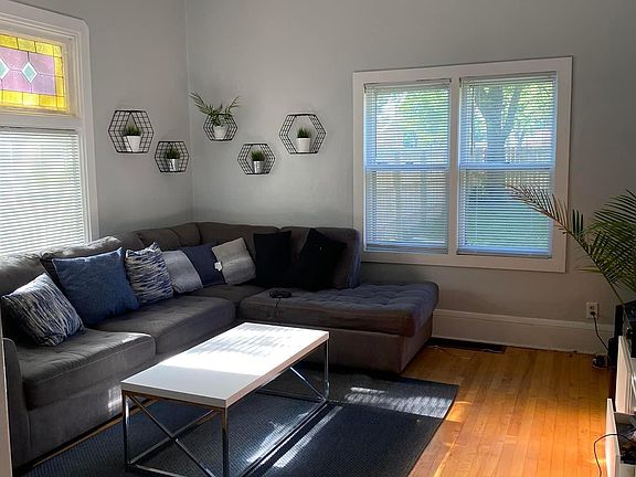 Updated interior w/ 6-ft privacy fenced in double lot. Oversized 2 car garage. 10ft ceilings, hardwood floors, tile floors, original stained glass window. New furnace, central air. The 10' tall ceilings make this cozy home feel larger than it is. The double-lot is great for outdoor barbeque parties and relaxing. Beautiful garden space in backyard. Included: Washer/Dryer, Range / Oven, Refrigerator (2), Microwave Monthly payment: $1,500 Deposit: $1,500 Lease Term: 6 months Background check: $40 per person Applicant Criteria: 1. Good Rental History, based on Saint Paul Regulations 2. Background check, based on Saint Paul Regulations 3. No Pets 4. No smoking 5. Income is 1.5-2 times rent amount Tenants also pay utilities: electricity/gas, water, trash Tenants responsible for taking care of property and yard maintenance. Thank you!