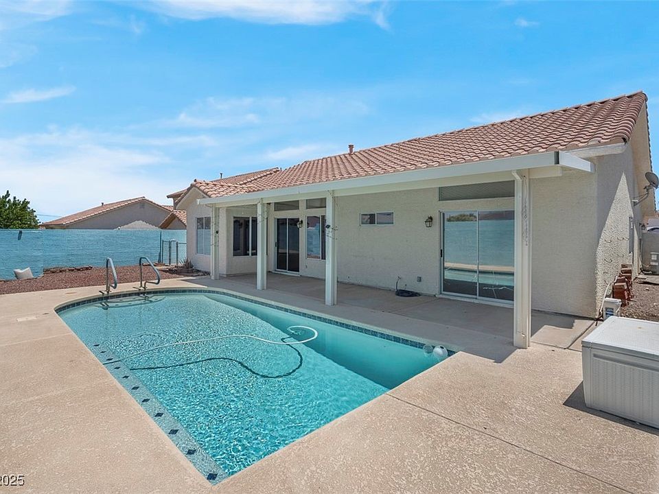 Landra Lane! A coveted 1 story, 3 bedroom pool home is located in highly desirable Henderson, on a spacious lot with RV Parking!! The backyard with full length covered patio and sparkling pool is an outdoor oasis and ideal forentertaining or unwinding in privacy. The kitchen features stainless steel appliances, upgraded granite countersample cabinetry, and is ope to the family room and dining area. The front room is large enough for it to be a secondfamily/living room. The primary suite with two separate closets and dual sink primary bath opens with it's ownprivate slider to the covered patio and sparkling pool! This is an opportunity not to be missed! Pool/RV Parking witha gate and paved runners all for under $450,000- this is a don't miss!! Schedule your tour today!!