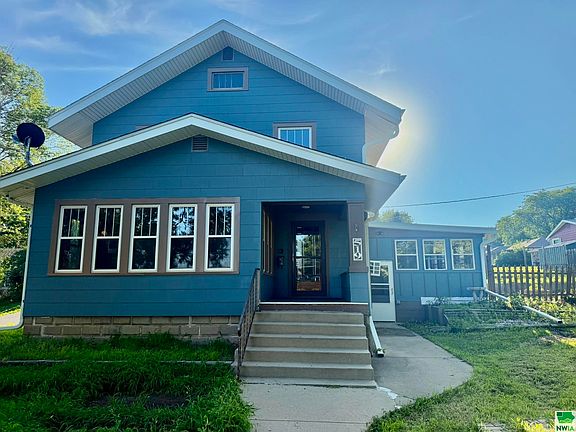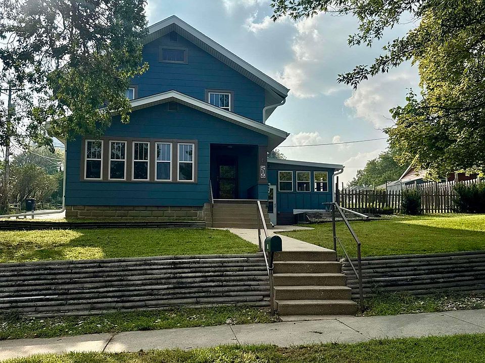 Step into this charming two-story home featuring beautiful oak kitchen cabinets paired with a full suite of GE appliances- perfect for both everyday cooking and entertaining. The hardwood floors add warmth and elegance throughout the main level (living area carpeted with hardwood underneath). Enjoy meals in the formal dining room complete with a bay window and cozy bench seat with storage. The sunroom, framed with French doors, offers a peaceful space to relax and enjoy a cup of coffee. A spacious living area showcases custom built-in oak cabinetry, adding both character and function. On the second floor you'll find your three bedrooms and full bathroom along with your front load LG washer and dryer for your convenience. The large covered screened in porch is sure to be the place to gather with friends to host BBQ's and enjoy those summer evenings and steps away outside is a firepit on your concrete patio to top it all off! The garage has plenty of room for 2+ vehicles and also has a bonus room for a workshop! Heat is boiler/radiator and works perfectly! A/C is by window units- 1 on the main and another in the master bedroom. Water softener is a rental from Blaine's in Cherokee. Water heater replaced in 2016. With a few minor fixes, this property would be the perfect starter home! Home is being sold AS-IS! Nonetheless, this home is full of inviting details and timeless craftsmanship you'll appreciate the moment you walk in!